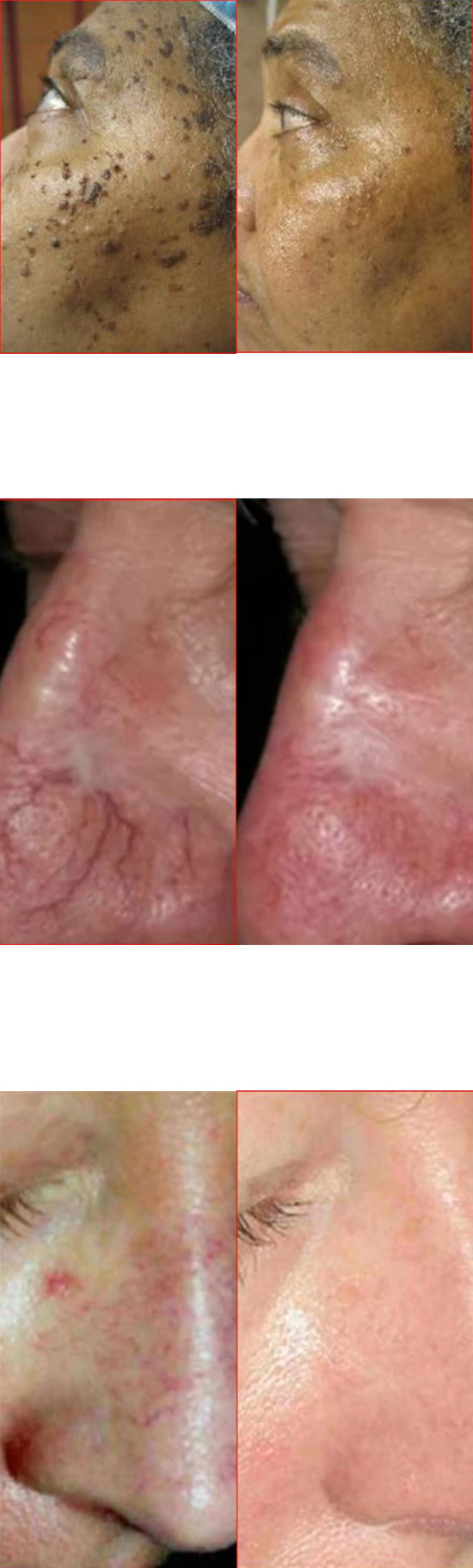 The KTP laser is used to treat blood vessels on the face, redness from Rosacea and brown spots(sun spots)for a dramatic improvement in the appearance of redness, vessels or brown spots in only one to two treatments and does not require any downtime. Some of the improvement is seen immediately, and some of the improvement in weeks following the procedure. The most common conditions treated are telangiectasias(fine spider veins in the cheeks and around the nose) Rosacea, hemangiomas, cherry angiomas on the face and body ,port wine stains and poikiloderma of civatte.